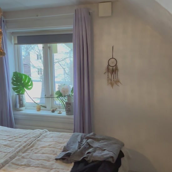 Denna drömfångare passar perfekt i sovrum, barnrum, yogarum eller där du vill skapa en känsla av lugn, enkelhet och balans. Ett mjukt skydd för nattens drömmar och en vacker inredningsdetalj som inte tar över, utan bär 🤍